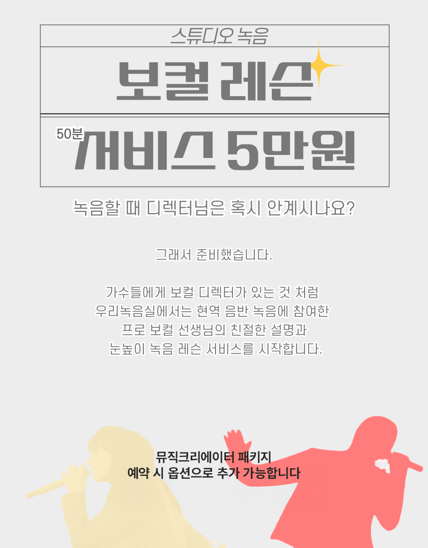 ❗ 뮤A하프와 기본에서는 녹음 부스로 선택 시 추가금이 있습니다.